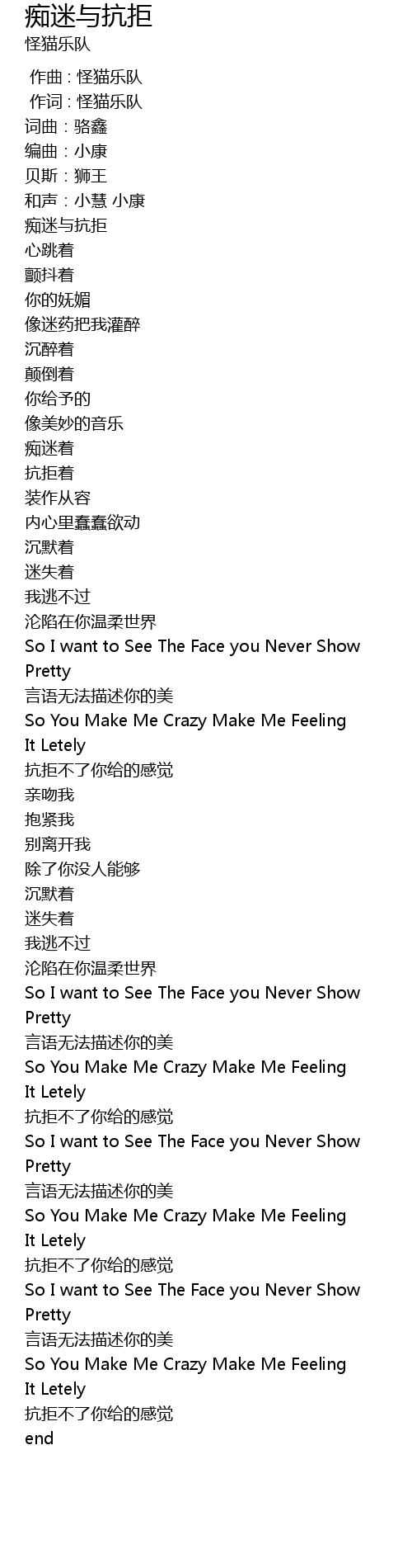 | [00:01.000] | 作词 : 怪猫乐队 |