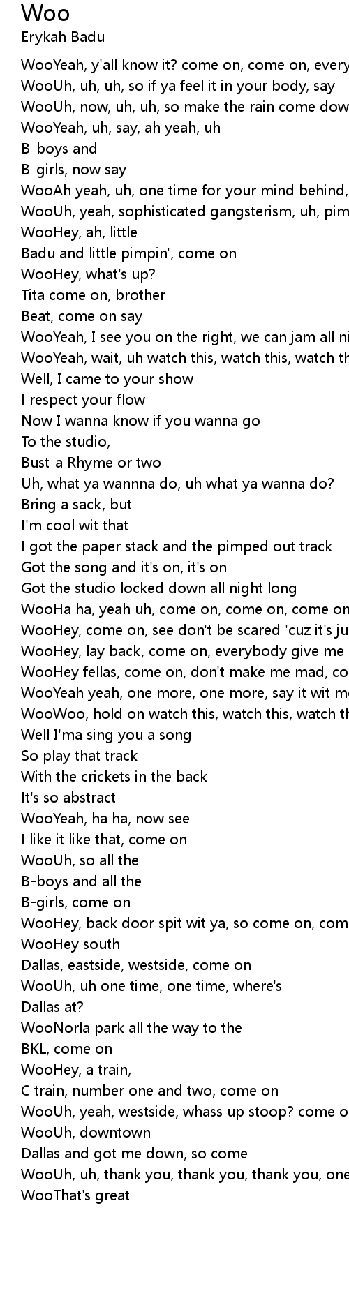 WooYeah, uh, say, ah yeah, uh |