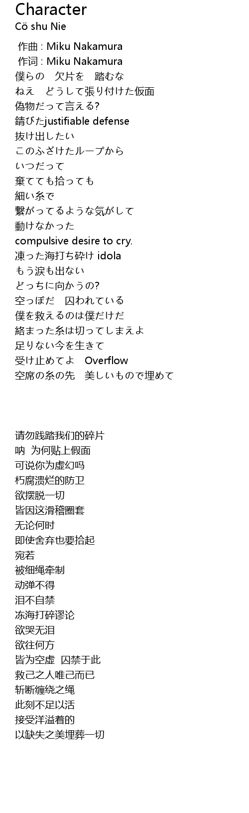| [00:00.000] | zuò qǔ : Miku Nakamura |
