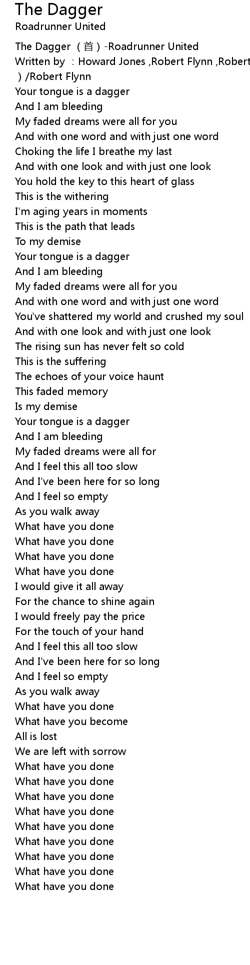 | [00:00.00] | The Dagger shǒu Roadrunner United |