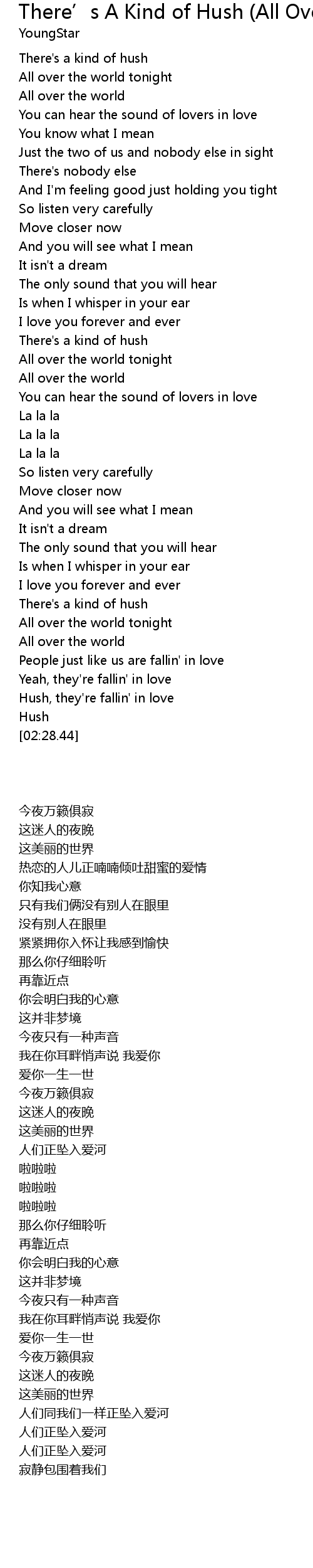 There’s A Kind of Hush (All Over The World) There' s A Kind of Hush All Over The World Lyrics