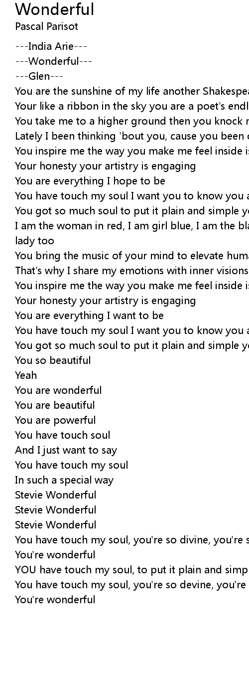 YOU have touch my soul, to put it plain and simple you are wonderful |