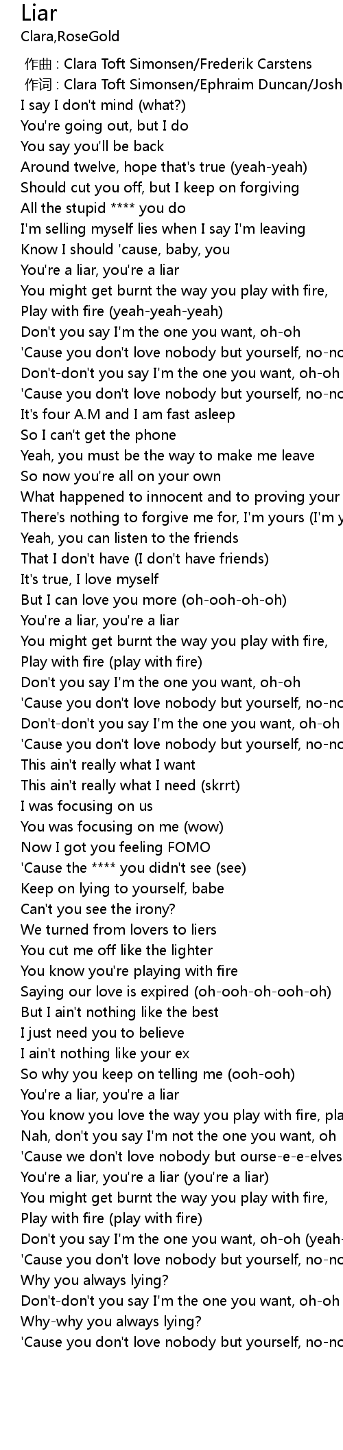 | [02:50.72] | Whywhy you always lying? |