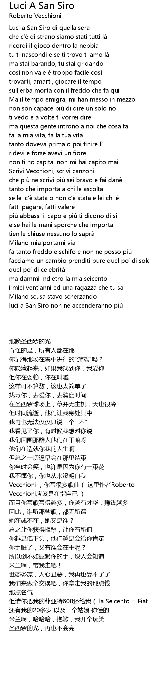| Song | Luci A San Siro |