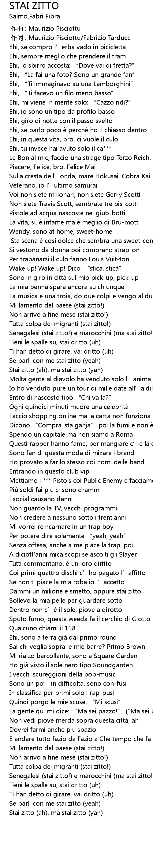 | [03:18.13] | Stai zitto (ah), ma stai zitto (yah) |