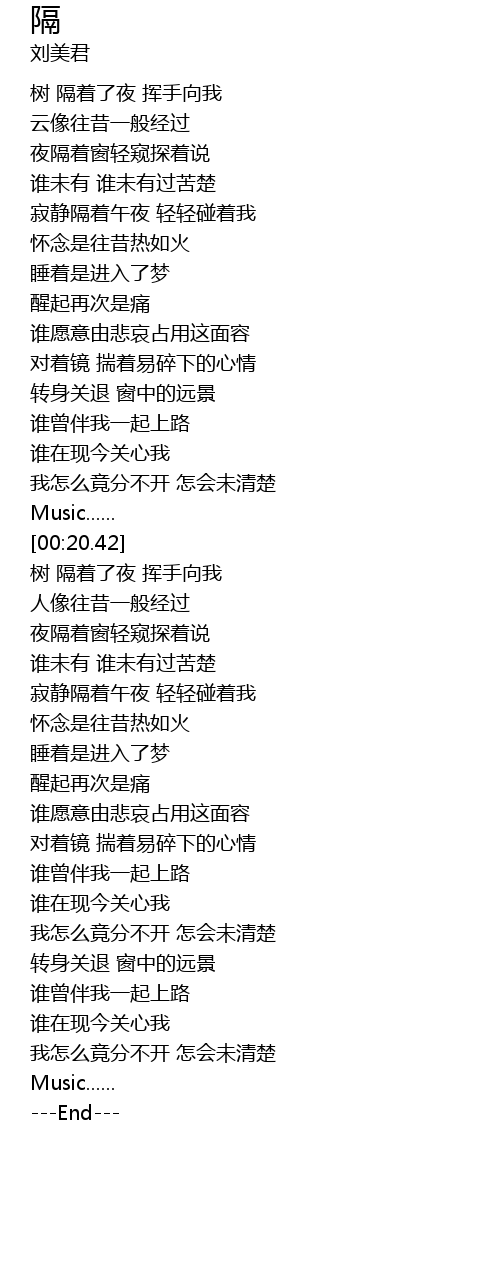 | [00:23.57] | 树 隔着了夜 挥手向我 |