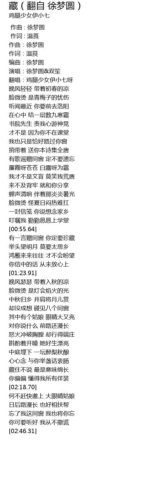 | [00:00.000] | 作曲 : 徐梦圆 |