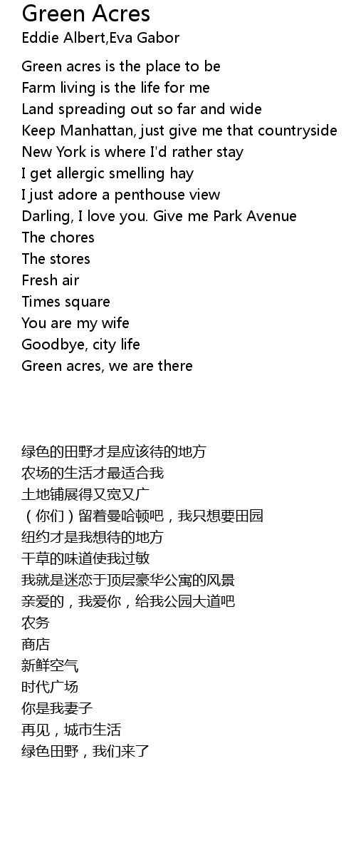 Green acres, we are there |