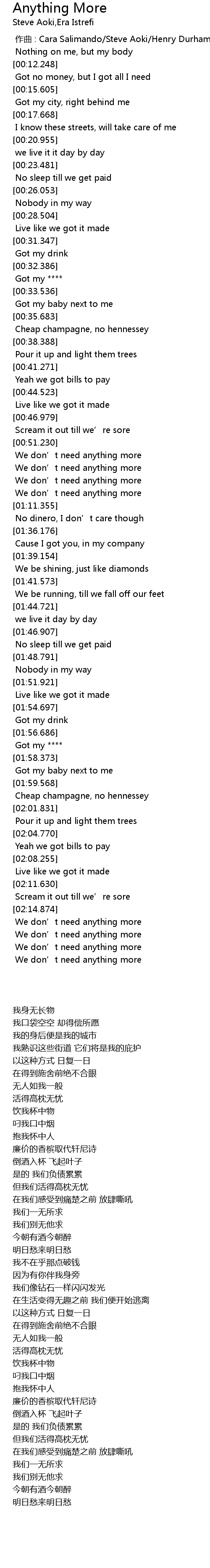 | [00:00.000] | 作曲 : Cara Salimando/Steve Aoki/Henry Durham |