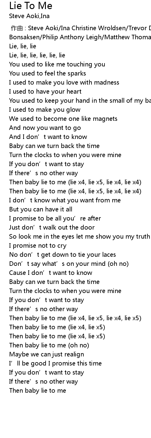 | [02:18.520] | Then baby lie to me (lie x4, lie x5, lie x4, lie x5) |