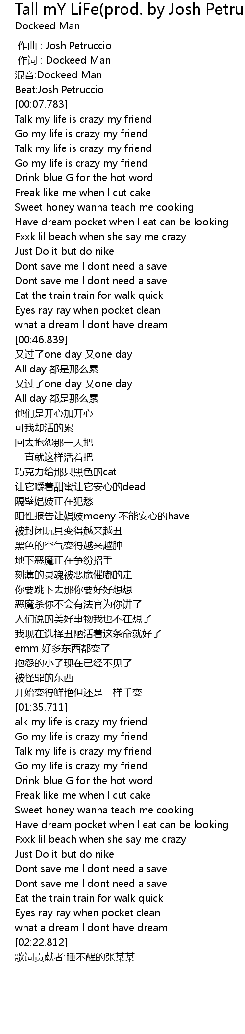 | [00:17.519] | Go my life is crazy my friend |