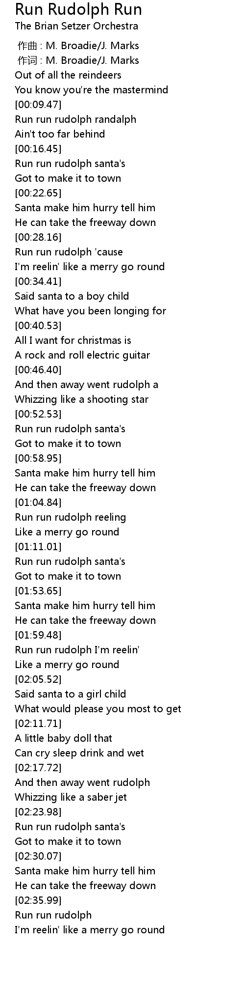 | [02:01.92] | Run run rudolph I'm reelin' |