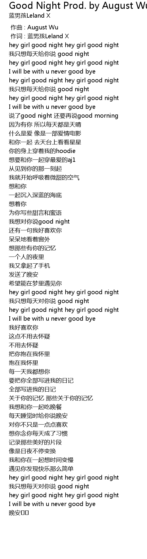 | Song | Good Night Prod. by August Wu |