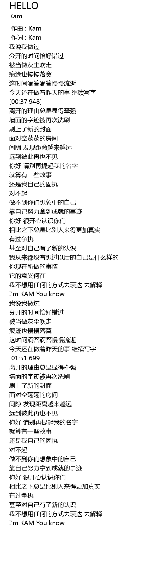 | [00:53.948] | 你好 请别再提起我的名字 |