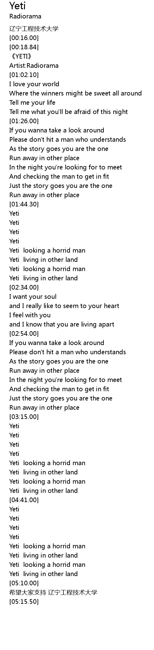 | [03:32.11] | Yeti living in other land |