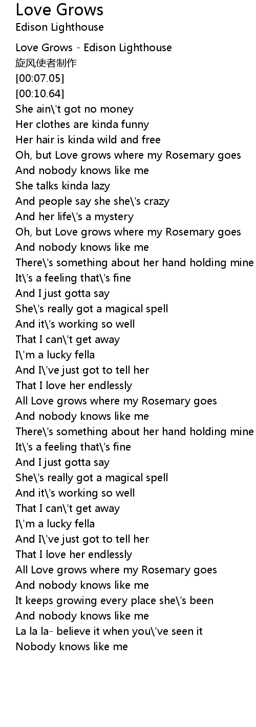 | [00:00.67] | Love Grows - Edison Lighthouse |