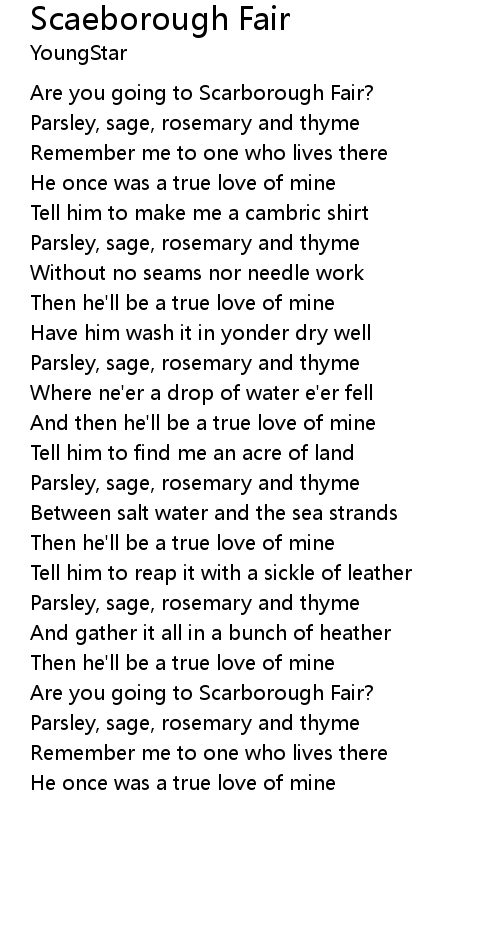 | Are you going to Scarborough Fair? | |