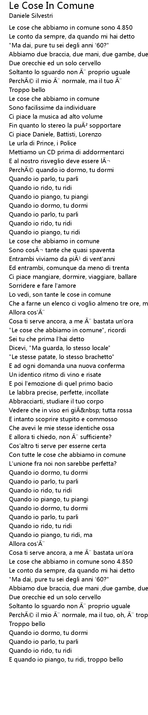 | Song | Le Cose In Comune |