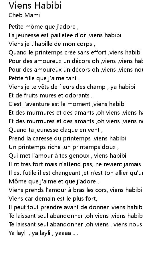 | Te laissant seul abandonner ,oh viens ,viens habibi | |