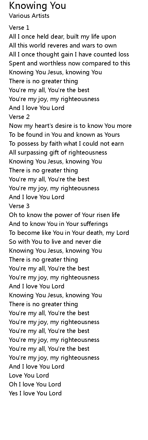 Knowing You Jesus, knowing You |