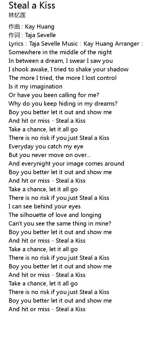 | And hit or miss Steal a Kiss | |