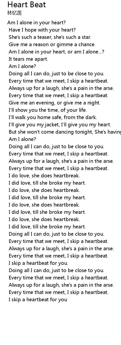 | I skip a heartbeat for you. | |