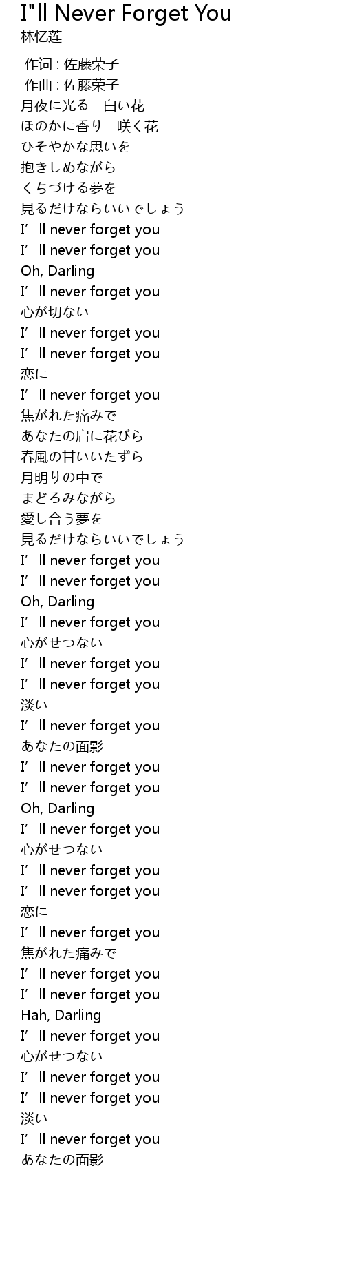| [02:28.61] | I’ll never forget you |