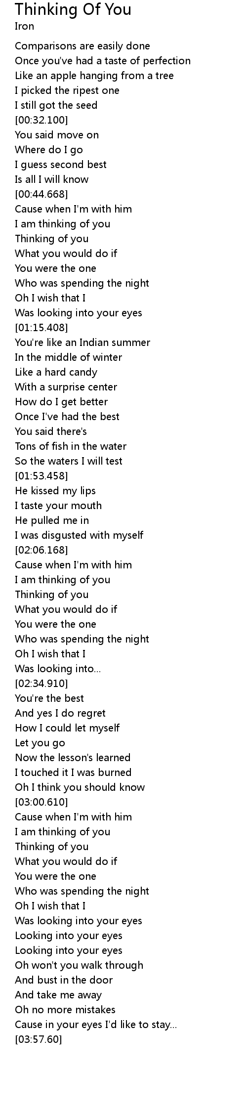 | [03:08.50] | Thinking of you |