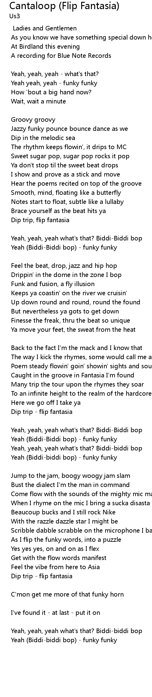 Yeah, yeah, yeah what's that? Biddi-Biddi bop