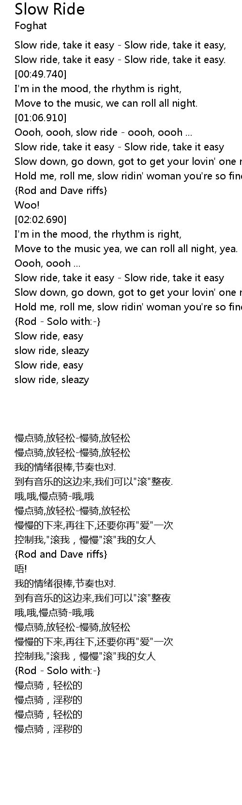 | [00:36.520] | Slow ride, take it easy Slow ride, take it easy. |