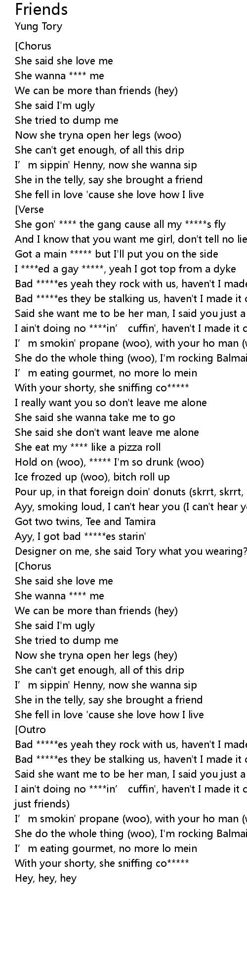 | [02:24.21] | I ain't doing no ****in’ cuffin', haven't I made it clear? (we're just friends) |