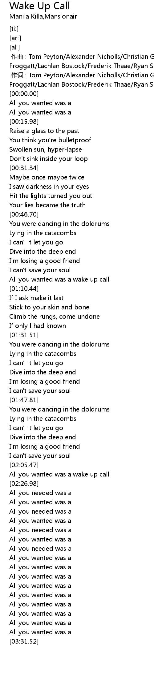 | [02:21.72] | All you wanted was a wake up call |