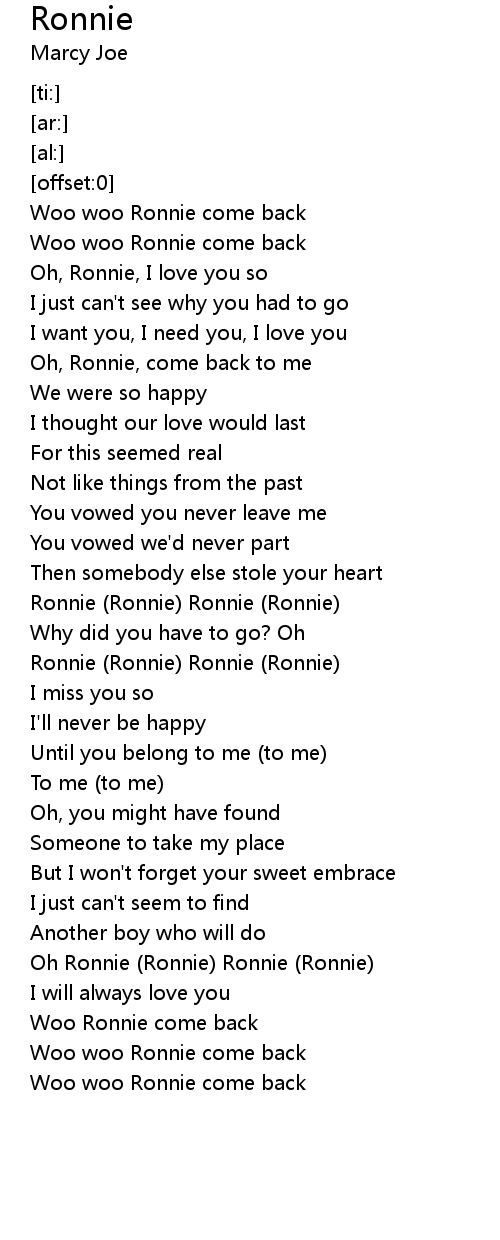 Oh Ronnie (Ronnie) Ronnie (Ronnie) |