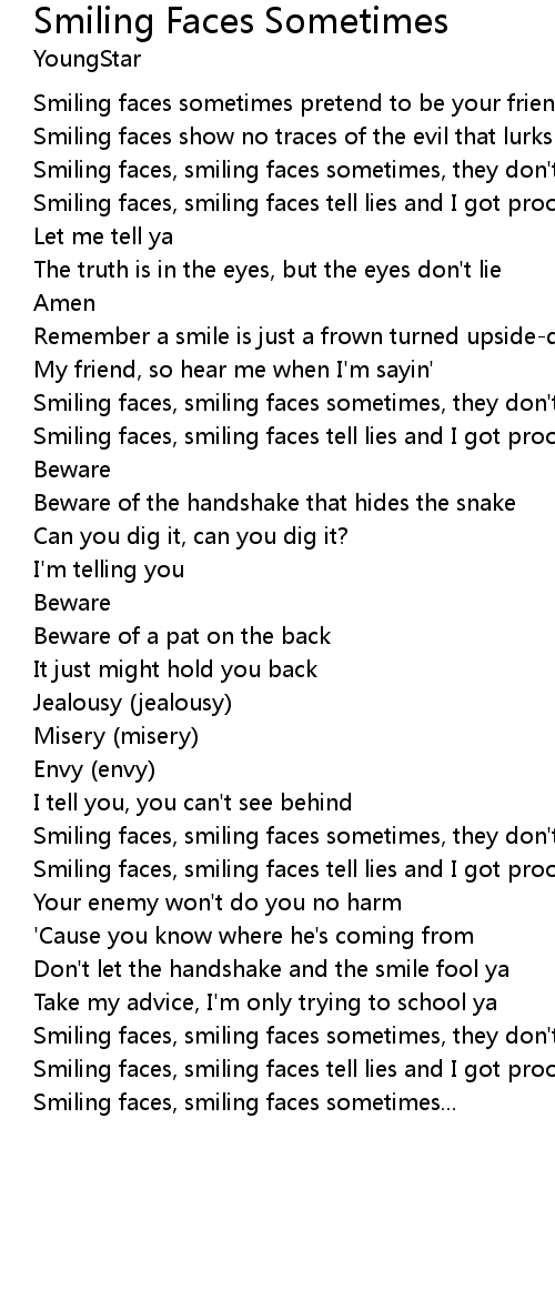 Smiling faces, smiling faces sometimes, they don't tell the truth |