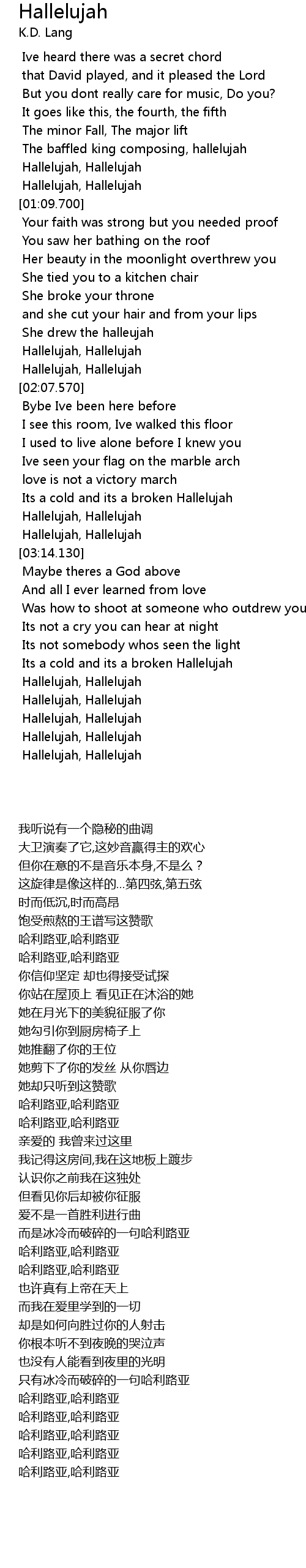 Its a cold and its a broken Hallelujah |
