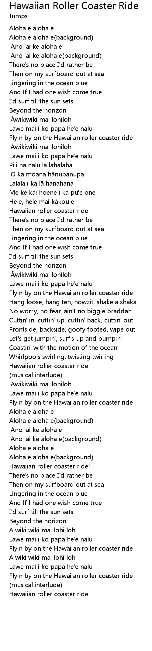 | Song | Hawaiian Roller Coaster Ride |