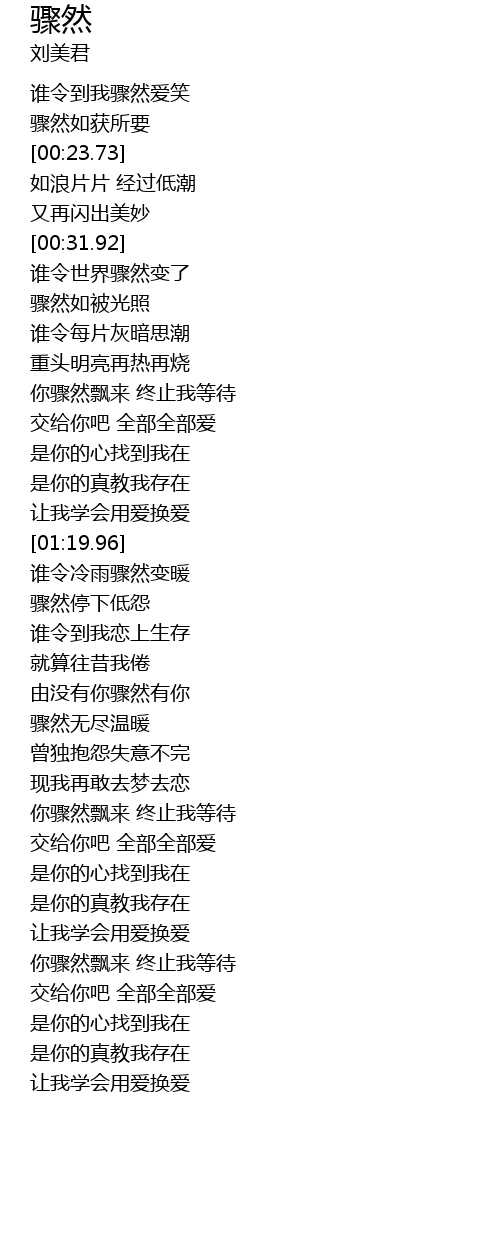 | [00:49.03] | 你骤然飘来 终止我等待 |