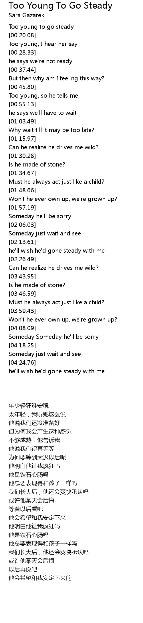 Too young to go steady |
