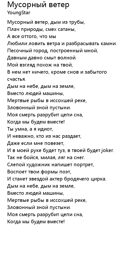 Мусорный ветер, дым из трубы, |