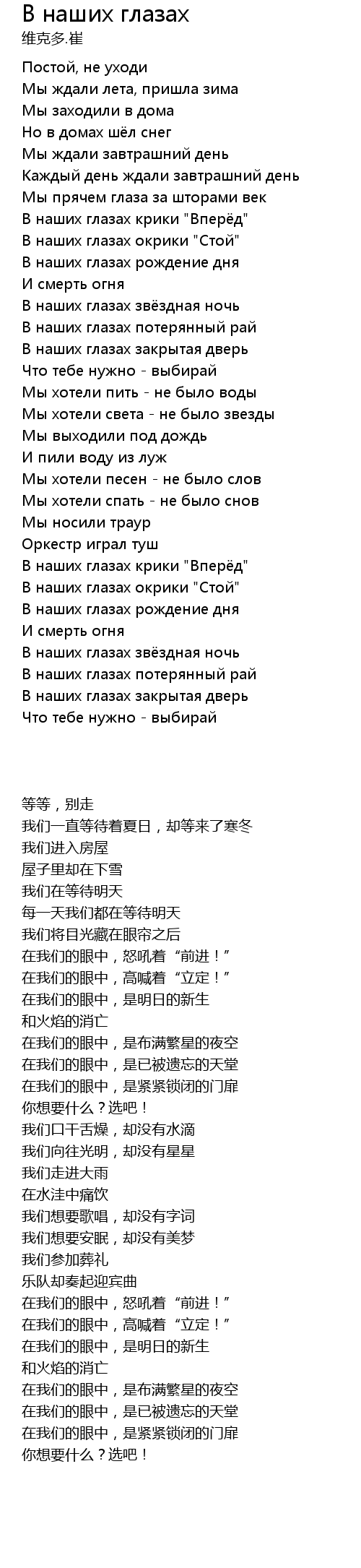В наших глазах  Lyrics