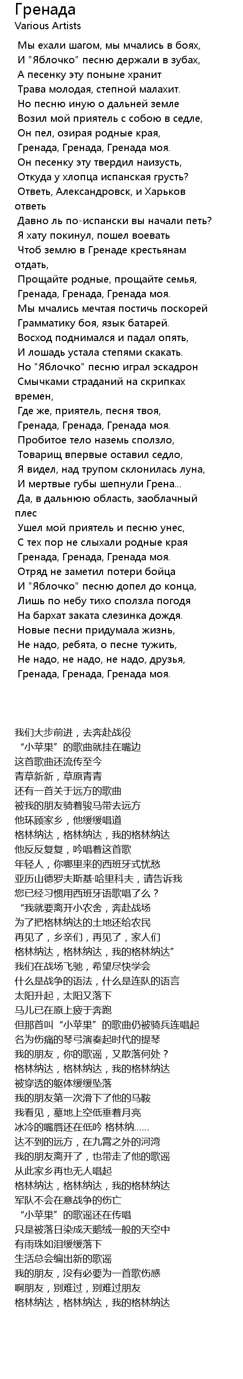 Гренада, Гренада, Гренада моя. |