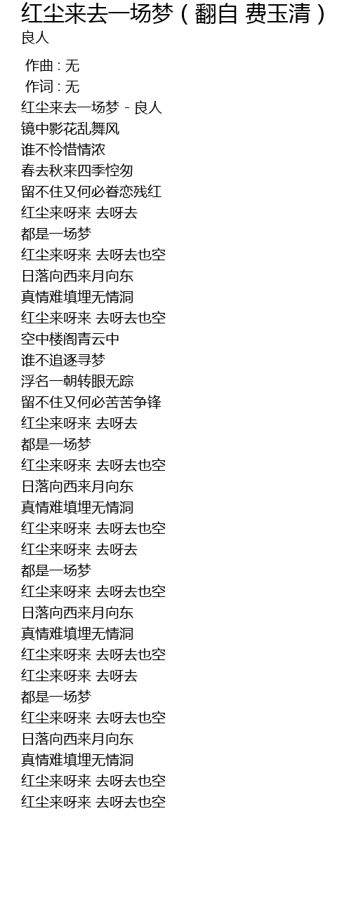 | [00:09.934] | 红尘来去一场梦 - 良人 |