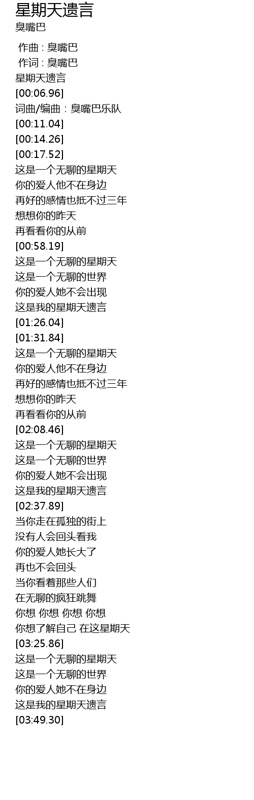 | [00:01.000] | 作词 : 臭嘴巴 |