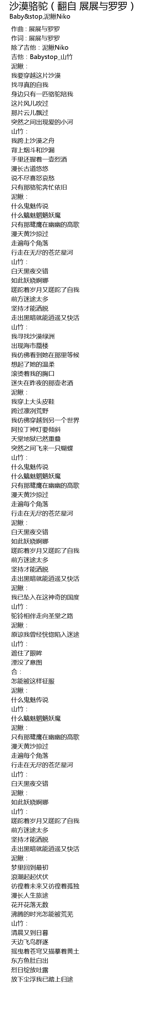 | [00:33.045] | 身边只有一匹骆驼陪我 |