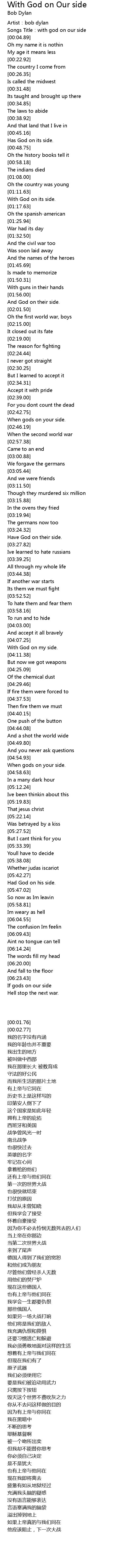 | [00:02.77] | Songs Title:with god on our side |
