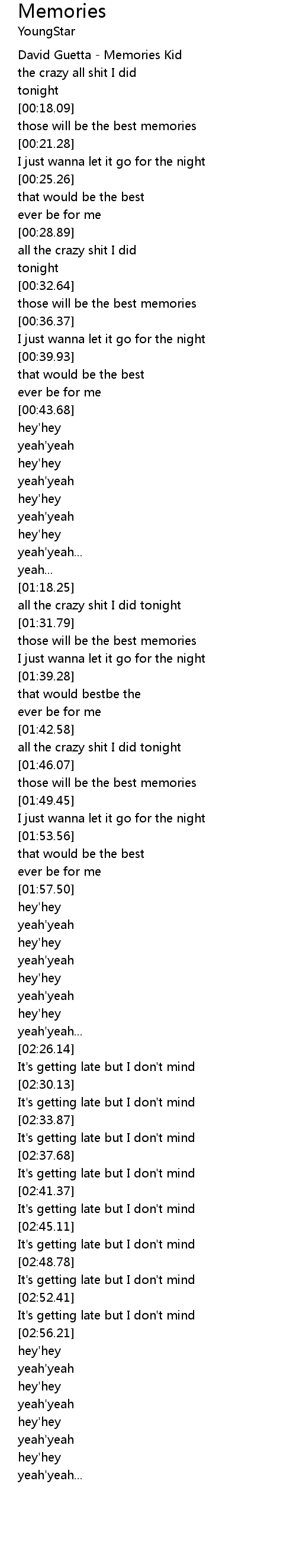 [00:01.81] David Guetta - Memories Kid