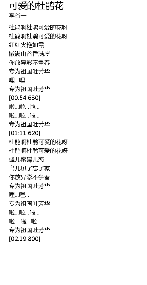 | [01:26.840] | 杜鹃啊杜鹃可爱的花呀 |