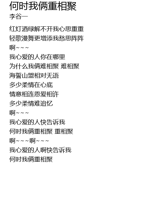 | [02:52.67] | 何时我俩重相聚 重相聚 |