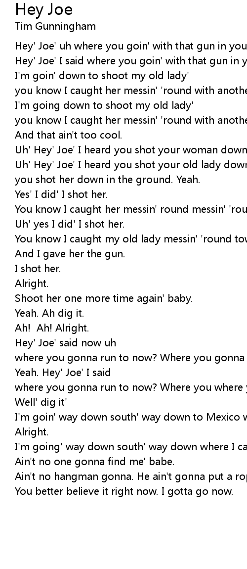 Hey' Joe' I said where you goin' with that gun in your hand? Alright. |