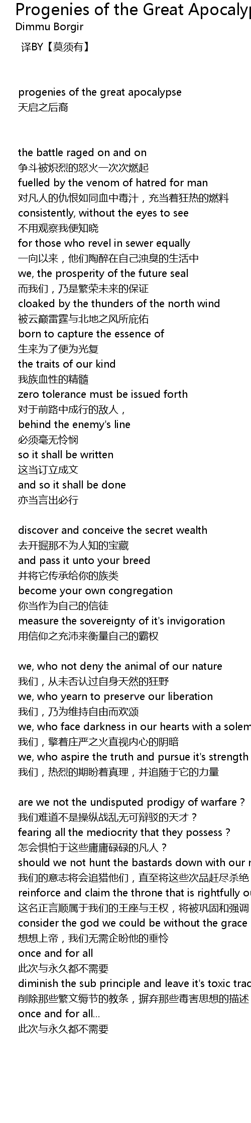 | 对凡人的仇恨如同血中毒汁,充当着狂热的燃料 | |